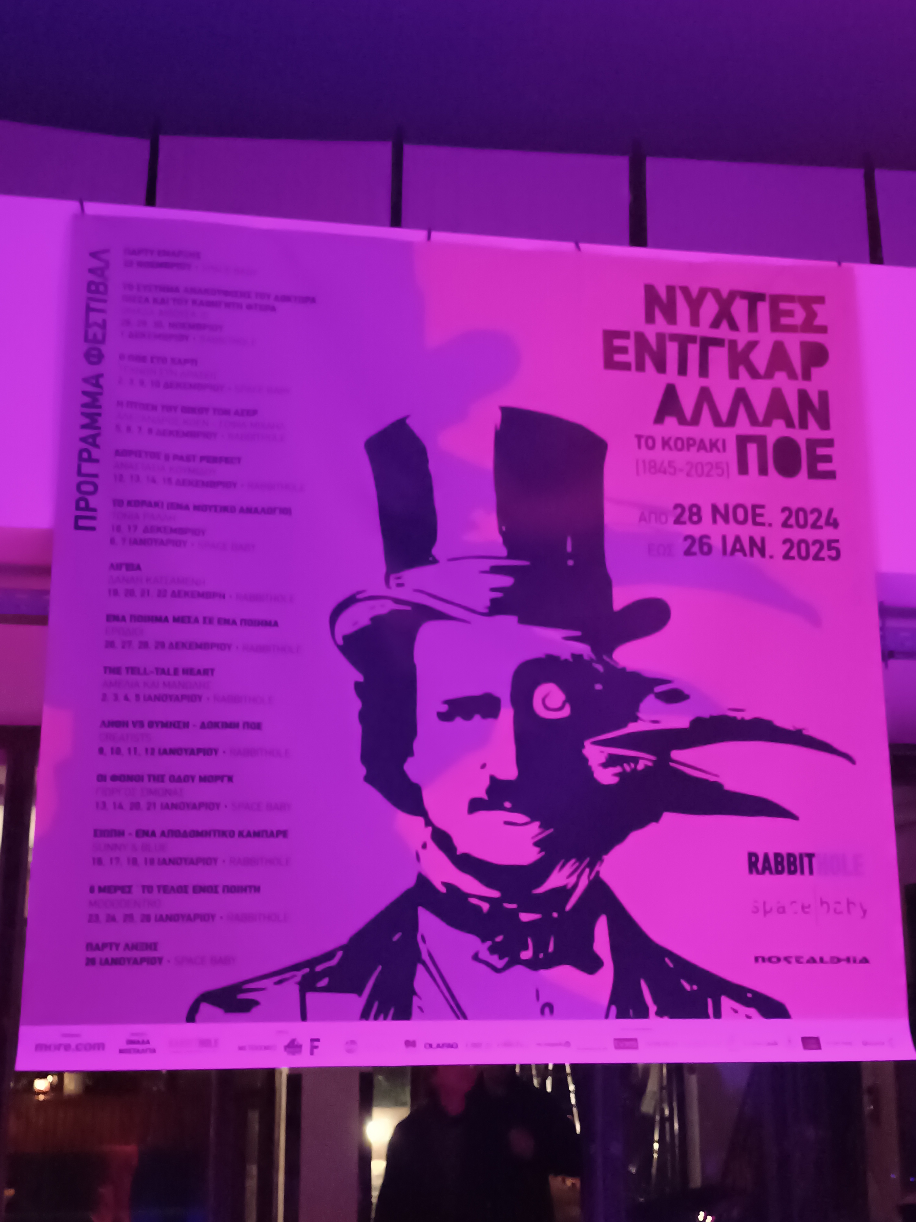 Η ομάδα Νοσταλγία με αφορμή τα 25 χρόνια παρουσίας της στο θεατρικό γίγνεσθαι της Αθήνας διοργανώνει ένα πλούσιο φεστιβάλ - φόρο τιμής στον Έντγκαρ Άλαν Πόε και στο έργο του. Στο φεστιβάλ, πέρα από την ομάδα Νοσταλγία, συμμετέχουν άλλοι δώδεκα καλλιτεχνικοί φορείς, οι οποίοι θα παρουσιάσουν τη δική τους σπουδή, το δικό τους βλέμμα πάνω σε εμβληματικά έργα του Πόε, όπως "Η μέθοδος του δόκτορα Πίσσα και του καθηγητή Φτερά", "Η πτώση του οίκου των Άσερ", το "Κοράκι", τη "Λίγεια", το "Ένα όνειρο μέσα σ' ένα όνειρο", το "The tell tale heart", "Οι φόνοι της οδού Μοργκ", το "Σιωπή - ένας μύθος" και πολλά ακόμα. Το φεστιβάλ θα λάβει χώρα στο Rabbithole και στο Space baby και αναμένεται να αποτελέσει έναν ανοιχτό διάλογο δύο μηνών πάνω στην ουσία και την αισθητική του έργου του Πόε.